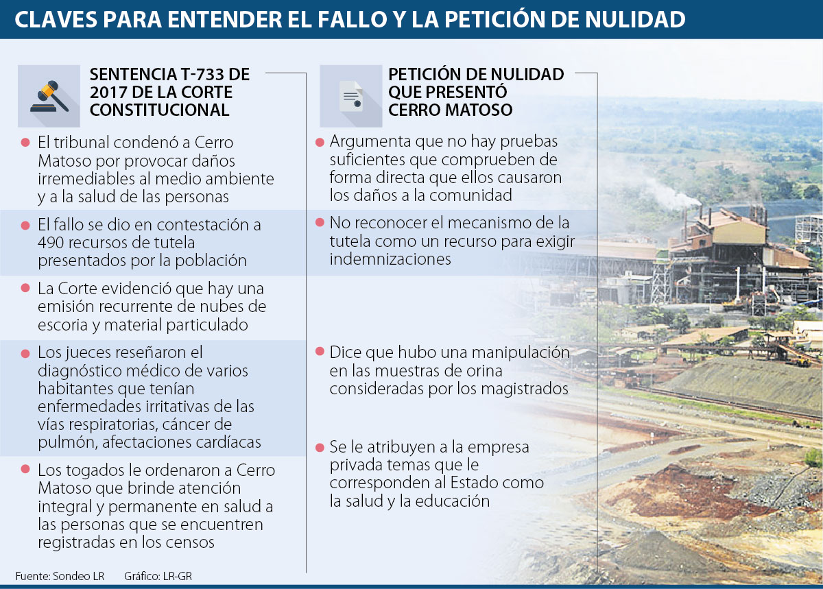 La empresa Cerro Matoso S.A interpuso un recurso de nulidad en contra de un histórico fallo que emitió la Corte Constitucional en respuesta a 490 tutelas interpuestas por los ciudadanos de varios municipios de Bolívar; entre ellos, Torno Rojo, Bocas de Uré, Puerto Colombia y Guacarí.