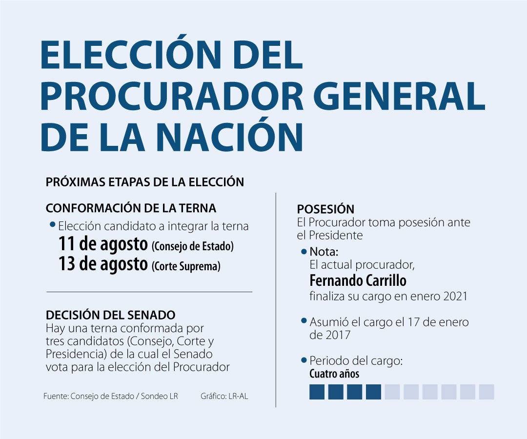 Una vez esté conformada la terna con los tres candidatos, esta deberá ser sometida a votación de la plenaria del Senado de la República. Allí, los senadores deberán escuchar y decidir quién será el nuevo Procurador. El elegido asumirá el cargo en enero de 2021, cuando termina el período de Fernando Carrillo, por un término de cuatro años y sin derecho a reelección.