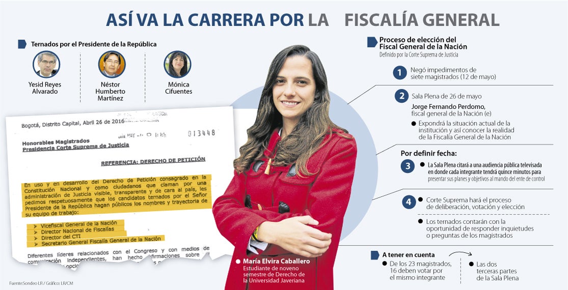 La estudiante de 24 años junto con Juan David León abogado de la Universidad del Rosario de 23, consideraron que los candidatos a ocupar el segundo cargo más importante en la administración de justicia del país deben hacer públicos los nombres y trayectorias de sus equipo de trabajo. Pues para ellos, “el Fiscal General no es la única persona que interviene en el diseño y ejecución de la política criminal del Estado”.