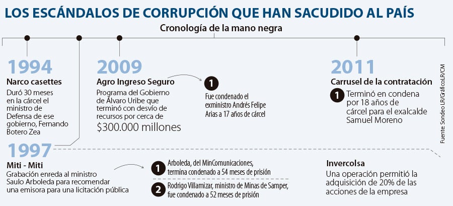 Y aunque no hubo condenados, a principio de este siglo terminó uno de los escándalos de corrupción más graves de la historia. El desfalco de Dragacol, en el que tuvo que comparecer el actual ministro de Hacienda, Mauricio Cárdenas, quien terminó siendo para el Consejo de Estado, un responsable solidario. La restitución al Estado de $13.000 millones vino por parte de la firma de Reginaldo Bray. Más adelante, en la primera década del siglo XXI se destaca también el desvío de recursos del programa Agro Ingreso Seguro. Los cálculos iniciales arrojaban hasta $300.000 millones destinados a beneficiarios que irregularmente obtuvieron, según las autoridades, los subsidios del Gobierno de Álvaro Uribe. La Corte Suprema, en 2014, condenó al exministro Andrés Felipe Arias a 17 años de cárcel y ordenó el pago de una multa de $30.000 millones.