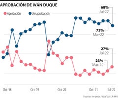 Por otra parte, con el sol a sus espaldas, el presidente Iván Duque también registró un crecimiento en aprobación. El actual jefe de estado aumentó 4 puntos porcentuales respecto a este indicador, pues el último estudio en marzo determinó que sus números verdes alcanzaron 23%, llegando así a 27% en julio.