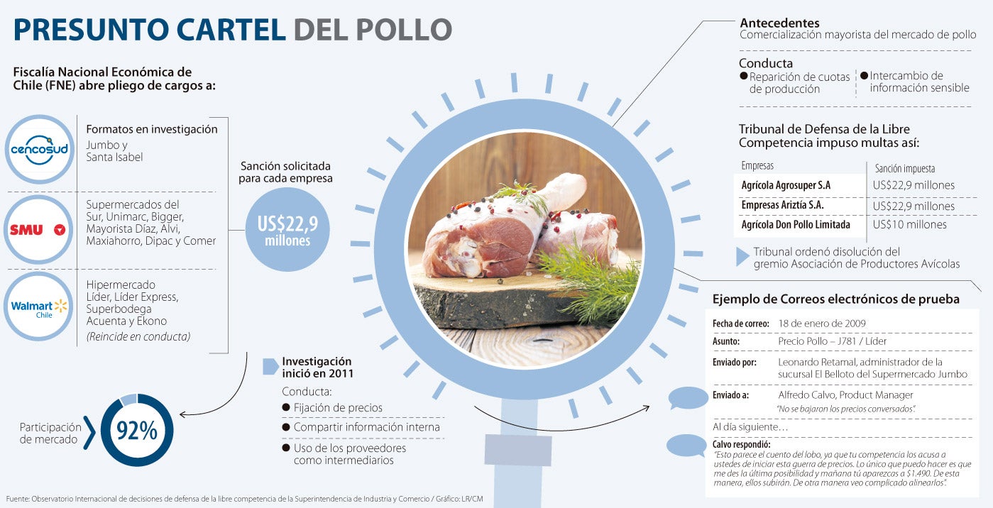 Y no es el único que se sorprende por la pregunta. En Chile recientemente ha sonado un escándalo sin precedentes en el que la Fiscalía Nacional Económica (FNE) abrió investigación contra SMU, Cencosud y Walmart porque hay indicios que demuestran cómo los supermercados de esas compañías llegaron a acuerdos para concertar los precios de venta al público de pollo.