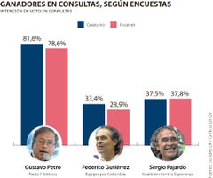 El caso para las otras coaliciones es más estrecho. Para Centro Esperanza, por ejemplo, el candidato más favorecido es Sergio Fajardo. Según Yanhaas, la intención de voto para el exalcalde de Medellín es de 18% en su consulta, mientras que Invamer lo ubica en 37,8%. Detrás se encontraría Juan Manuel Galán, con intención de 12% y 23,9%, respectivamente.
