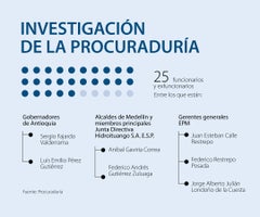 La indagación vincula a 25 funcionarios, exfuncionarios y miembros de junta, entre los que destacan: dos directores de la Agencia Nacional de Licencias Ambientales (Anla), Claudia González y Rodrigo Suárez; los exgobernadores de Antioquia Sergio Fajardo y Luis Pérez; tres exgerentes de EPM, Juan Esteban Calle, Federico Restrepo y Jorge Londoño; y dos exalcaldes de Medellín, Aníbal Gaviria y Federico Gutiérrez.