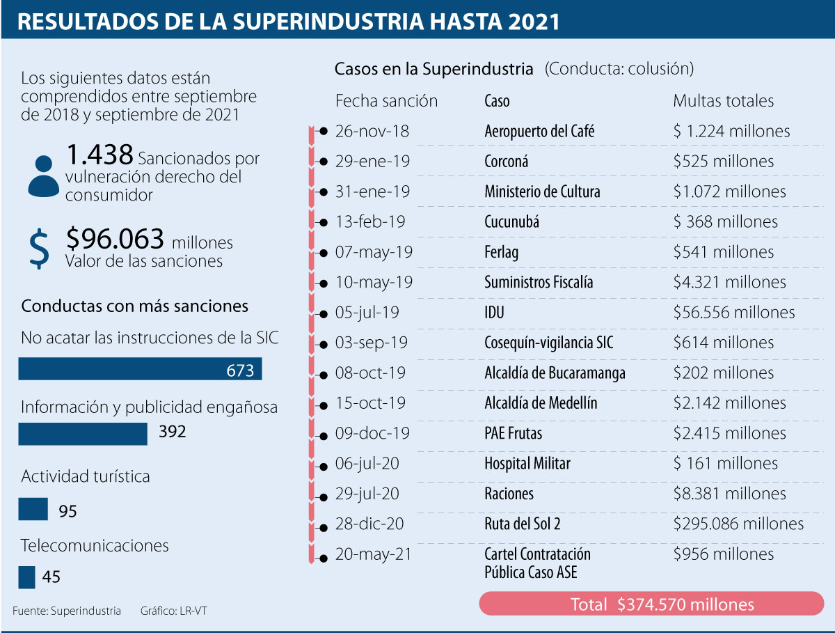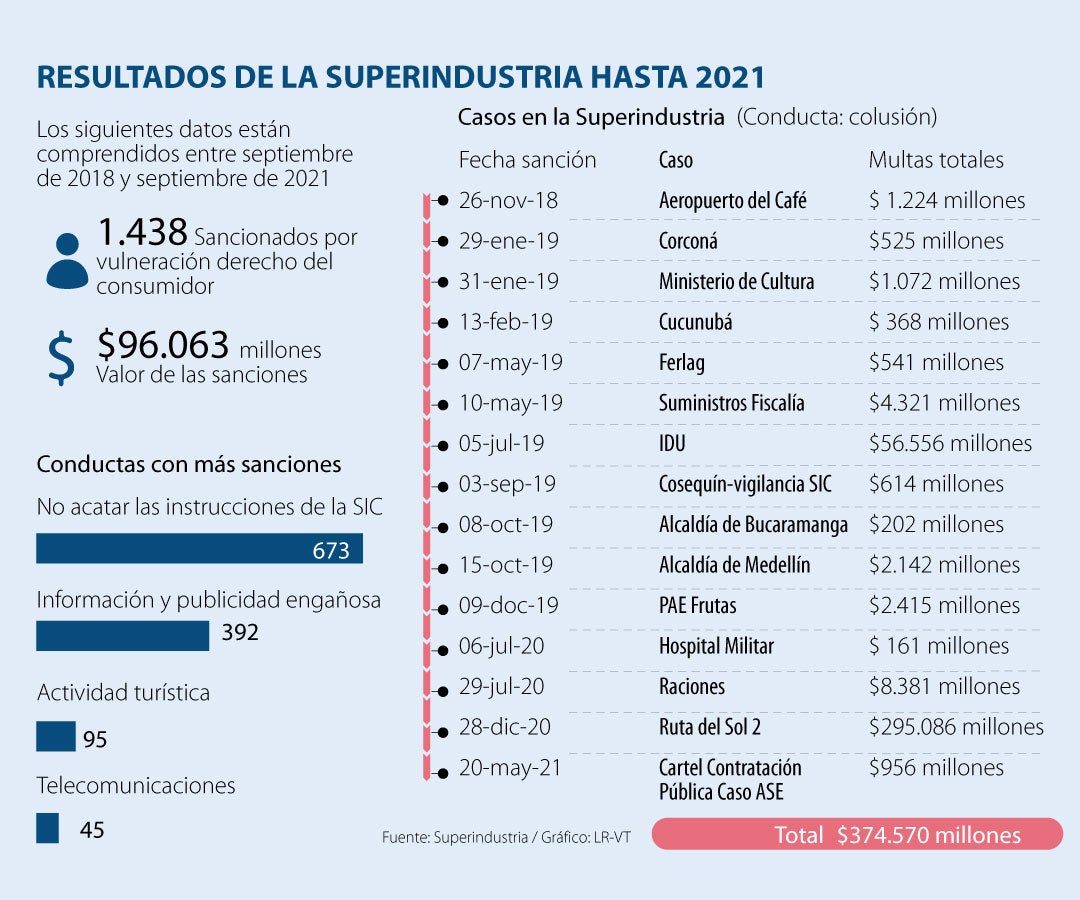Como dato final, la protección a la competencia también ha sido un objetivo claro de la entidad. Se conoció que se han impuesto sanciones por $568.000 millones, total que fue alimentado por la sanción más alta que ha impuesto la SIC: $295.000 millones a la Ruta del Sol II.