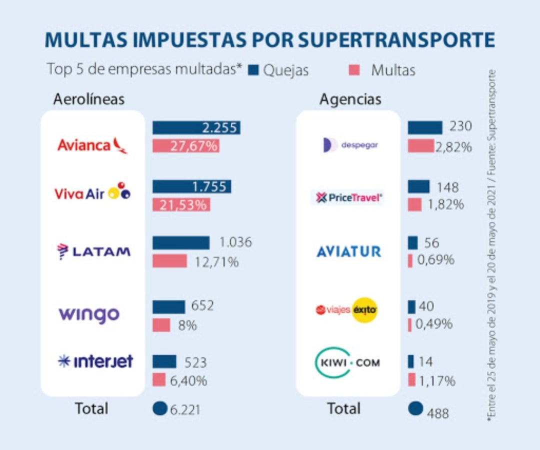 La Superintendencia de Transporte anunció la imposición de multas por $1.469 millones por encontrar vulneración a los derechos de los usuarios del transporte aéreo. La entidad está a cargo desde el 25 de mayo de 2019 de velar por los usuarios, según lo estipulado en el Plan Nacional de Desarrollo.