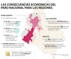 Un reporte de la Policía Nacional reveló que a medio día del jueves se contabilizaban 62 concentraciones y 43 bloqueos en 76 municipios de 17 departamentos, siendo Huila, Valle del Cauca y Cauca, en el sudoeste del país, las regiones con mayor afectación en la red vial.