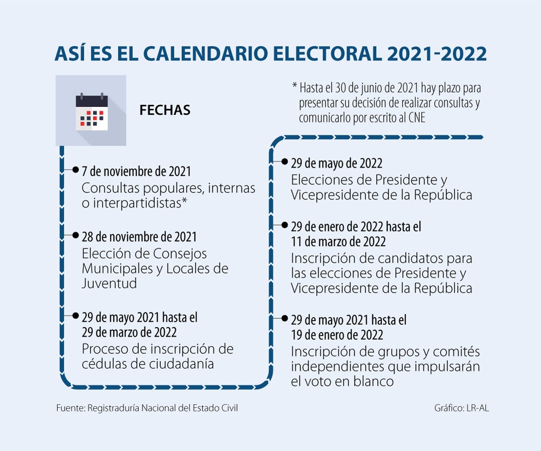 Elecciones presidenciales: el domingo 29 de mayo de 2022 se elegirá al próximo Presidente de la República y Vicepresidente de la República. Los candidatos a este cargo deben inscribirse entre el 29 de enero y el 11 de marzo de 2022.