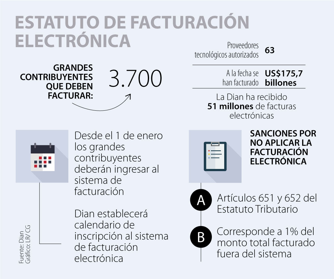 La Dirección de Impuestos y Aduanas Nacionales (Dian) estableció que los grandes contribuyentes en el país deben realizar sus procesos de facturación electrónica de forma obligatoria, sin excepción alguna, desde el primero de enero de este año.