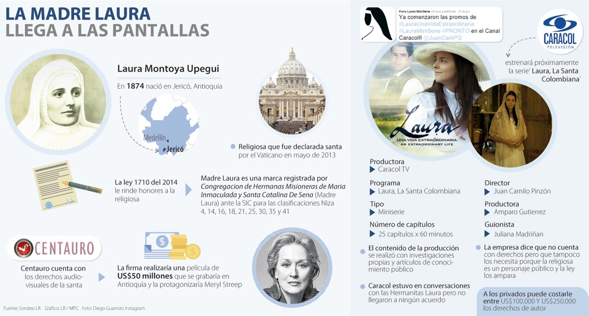 Al respecto, Guillermo Navarro, socio de Muñoz Abogados dijo que si bien la serie se llamará ‘Laura, La Santa Colombiana’, Caracol en ninguna pauta o actividad comercial podrá invitar al público expresando textualmente que “vean la serie de La Madre Laura” porque si lo hace estarían infringiendo el derecho de marca de la Congregación.