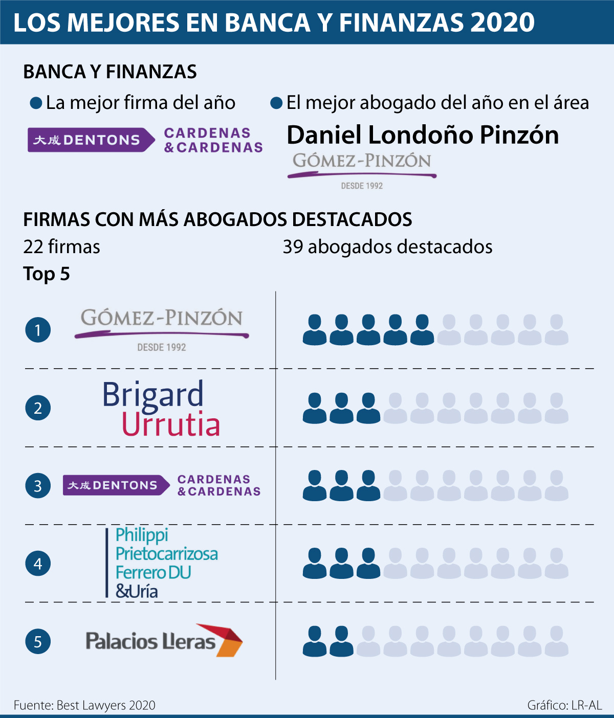 En esta edición, la publicación destacó la labor de 39 abogados locales especializados en Banca y Finanzas repartidos en 22 bufetes diferentes. La mejor firma del año quedó Dentons Cardenas & Cardenas mientras que el mejor jurista de 2020 fue Daniel Londoño Pinzón, socio de Gómez Pinzón.