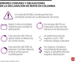 Para las personas naturales las multas por no hacer su declaración de renta a la Dian, en las fechas estimadas del calendario (ver gráfico), deben liquidarse y pagar una sanción equivalente a 5% del impuesto a cargo, por cada mes o fracción de retraso, sin que este exceda 100% del valor del impuesto, de acuerdo con Andrés Bermúdez, director de derecho tributario en la firma Godoy Córdoba.