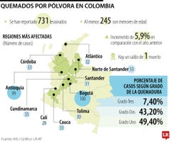 De acuerdo con el Observatorio de Salud de Bogotá de la Secretaría de Salud de Bogotá, entre 2024 y 2025, se reportaron 181 casos de lesiones por pólvora, de los cuales 34 fueron de primer grado de quemadura y 52 de segundo. El informe también reveló que, del total de víctimas afectadas, 31 fueron menores de edad.
