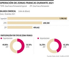En Colombia hay 122 ZF y de estas se destaca la de Bogotá, ya que fue declarada la mejor de América Latina y la cuarta mejor del mundo, generando 32.000 empleos directos y exportando cerca de US$100 millones.