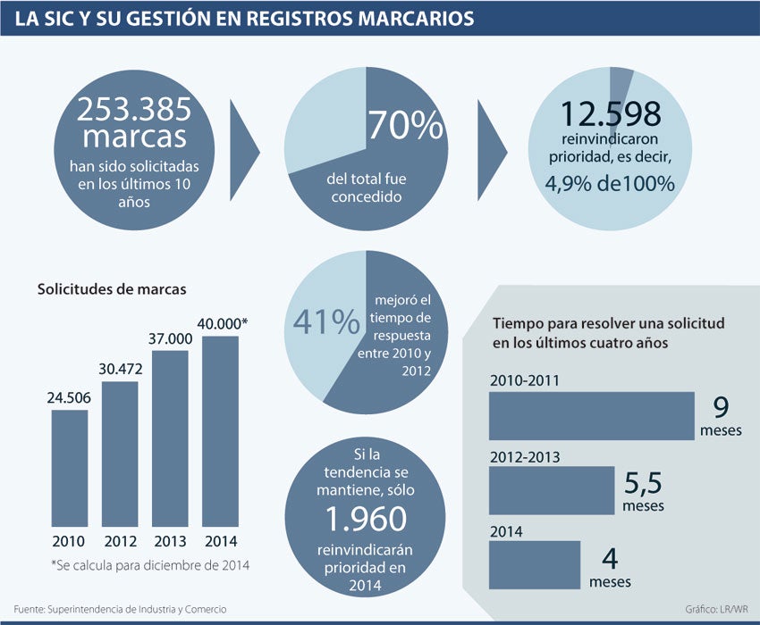 Las estadísticas de la Superindustria coinciden con la opinión de Martínez y el porcentaje es bajo. En los últimos 10 años se han presentado 253.385 solicitudes de marcas (100%) y de esa cifra se concedió 70%. En el mismo periodo solo se presentaron 12.598 reivindicaciones de prioridad, es decir, 4,9% del total.