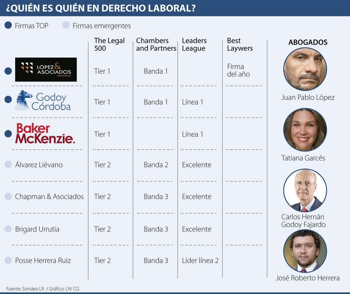 Con la publicación del ranking Best Lawyers concluyeron los galardones en servicios legales más importantes que existen en el país. Uno de los sectores que mayor competitividad presenta en ese mercado es el que se enfoca en el derecho laboral y las asesorías empresariales para regular temas sindicales. En este campo la competencia se da entre dos firmas: López Asociados y Godoy Córdoba.