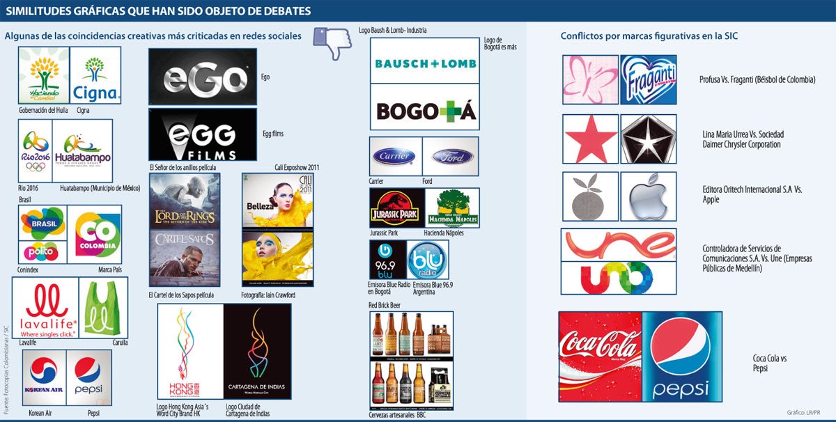 De acuerdo con los expertos, esta situación se puede dar en dos escenarios, el primero, en el terreno de las marcas, es decir, si está registrado ante la Superintendencia de Industria y Comercio-SIC y el segundo, si el símbolo puede protegerse bajo el concepto de propiedad intelectual. En este sentido, Marcenaro explicó que en el ámbito marcario puede ocurrir que al momento de registrar un signo, la empresa que se sienta vulnerada se oponga ante la SIC, quien podría negar dicho registro. “Otra situación se presenta cuando se usa la marca comercialmente sin estar registrada, allí el dueño del signo podría demandar por usurpación marcaria tanto civil como penalmente.