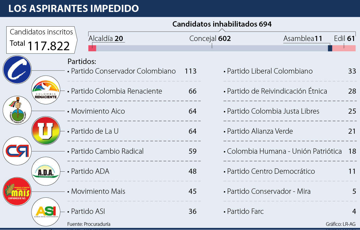 En total, la Procuraduría identificó que, de los 117.822 aspirantes inscritos, 694 candidatos a las elecciones de octubre estaban inhabilitados.