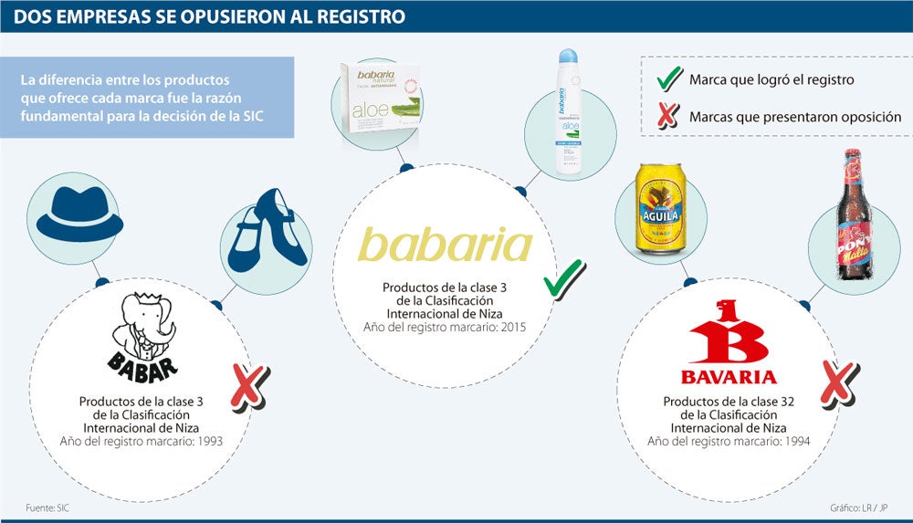 La SIC concedió el registro de Babaria a favor de la sociedad Berioska, para identificar jabones, desodorantes, cosméticos y otros productos de la clase 3 de la Clasificación Internacional de Niza.
