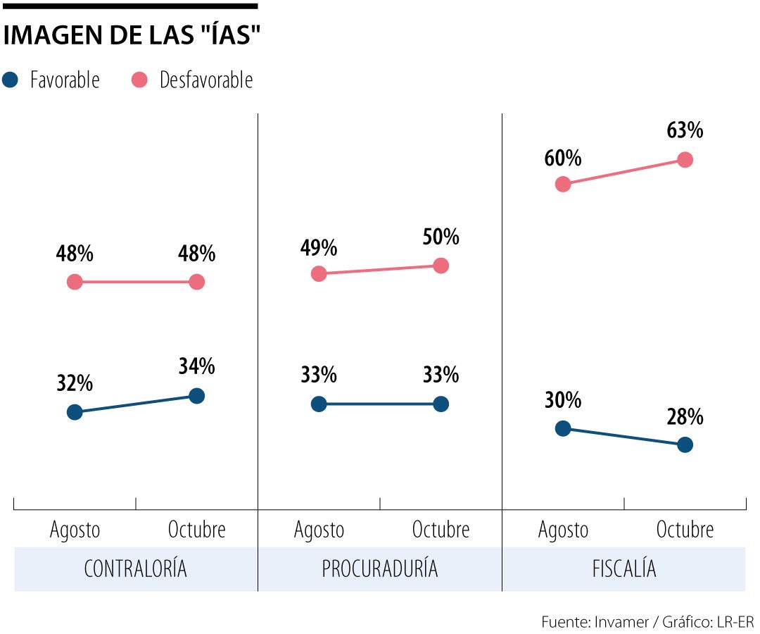 La Contraloría es la única que mantiene su imagen desfavorable por debajo de 50% y la "ía" peor calificada fue la Fiscalía General
