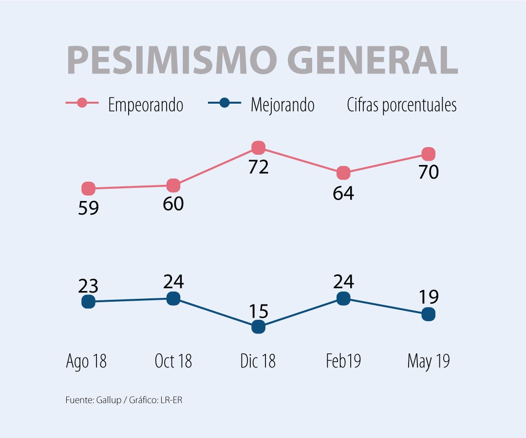 Estos resultados en el campo político se tradujeron en un negativismo generalizado. Según la encuesta, para 70% de las personas consultadas, la situación general del país ha empeorado.