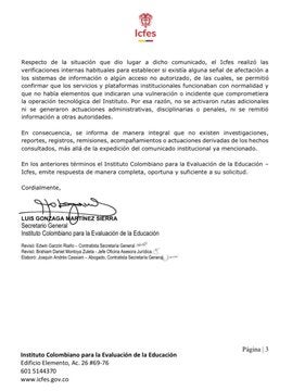 No obstante, el instituto sacó un comunicado en el que aseguró que, ellos no le habían proporcionado esta información a la Representante, por lo que se sugirió un posible hackeo de su información, siendo esta la razón principal de la investigación que solicita Pedraza que desarrolle la Procuraduría.