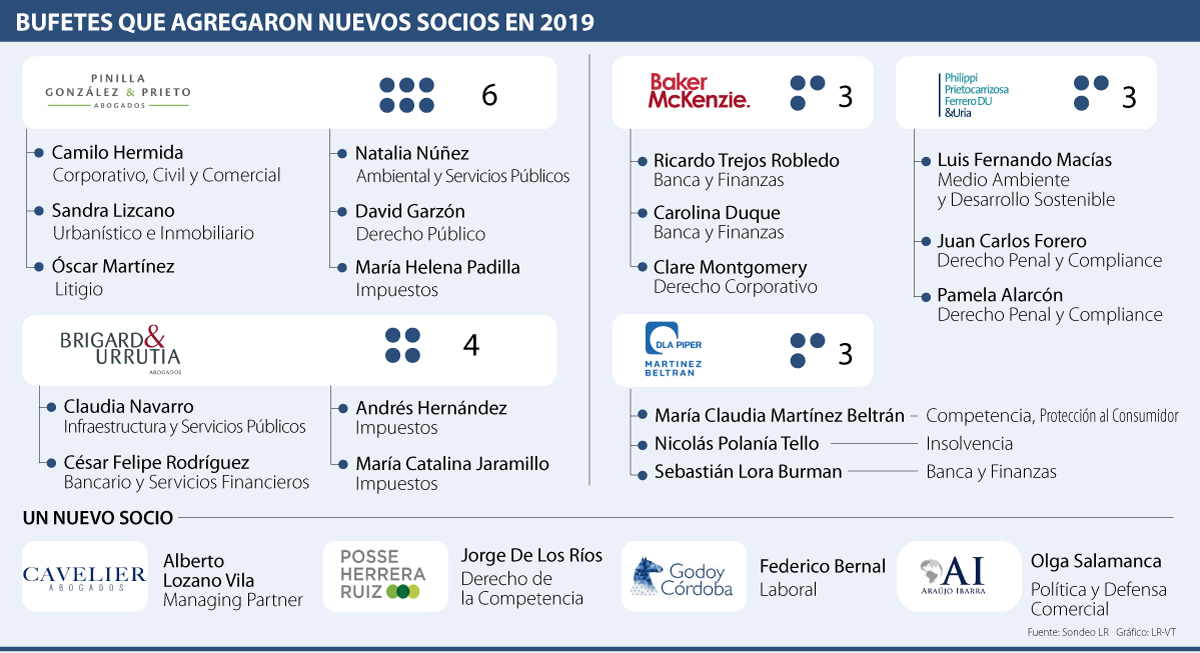 Las firmas que solo agregaron un socio este año fueron algunas como Cavelier, Posse Herrera Ruiz, Araújo Ibarra y Godoy Córdoba. Otros bufetes importantes como Dentons Cardenas & Cardenas, Holland & Knight, Lloreda Camacho y Carrero & Asociados no agregaron nuevos.