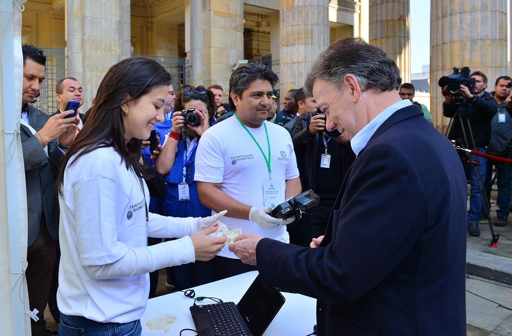 El presidente Santos fue identificado a través de su huella digital y le hicieron entrega de los tarjetones para ejercer su derecho al sufragio.