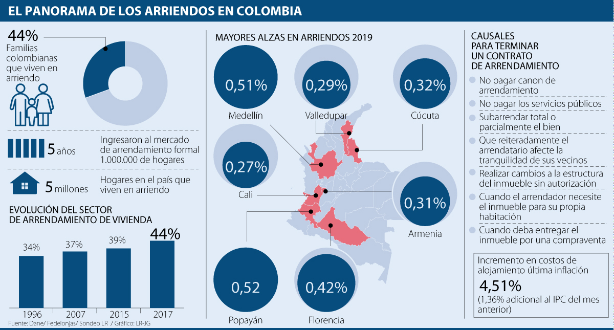 Además de la terminación y no renovación del contrato de arrendamiento, la ley contempla siete causales para que el arrendador pueda iniciar un proceso judicial ante los jueces civiles del circuito (ver gráfico).