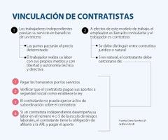 Los contratos de prestación de servicios, agregó, se deben utilizar para actividades “realmente independientes” y cuando una persona esté bajo subordinación, deberá estar contratada por la modalidad de contrato de trabajo. “En mi opinión no hay que cambiar la ley”, dijo.