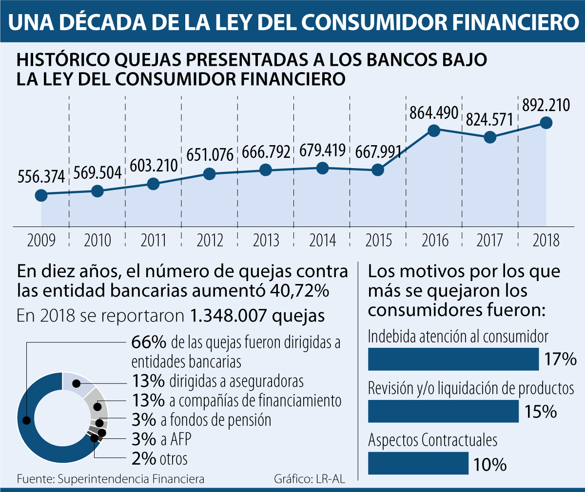 Esto se puede ver en que el primer año de entrada en vigencia de la norma las personas interpusieron 556.374 quejas contra las entidades bancarias. El año pasado, este número alcanzó las 892.210 quejas, con lo que se registró un incremento consolidado de 40%.