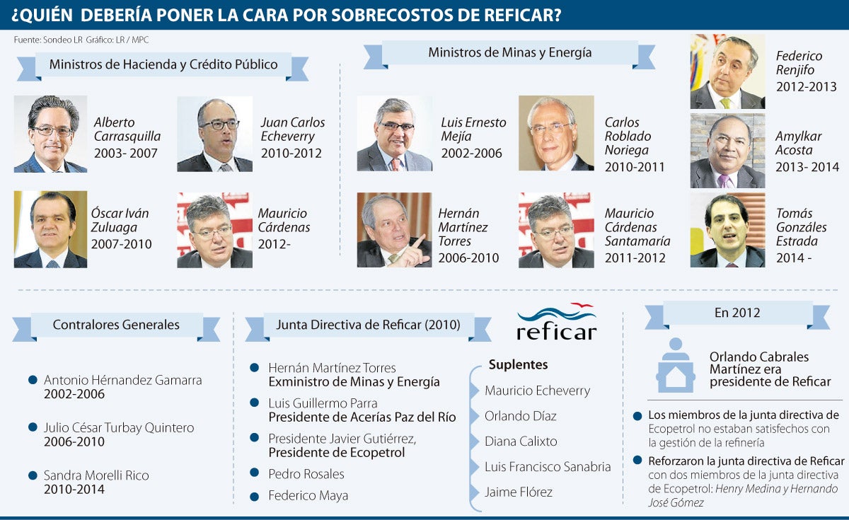 A imputación de cargos fueron llamados los expresidentes de Reficar, Orlando Cabrales Martínez y Reyes Reinoso. También están en esta lista Felipe Laverde Concha, vicepresidente financiero de Reficar, y Pedro Rosales, de Ecopetrol. Los cargos que le imputarían a los primeros serían interés indebido en celebración de contratos, peculado y enriquecimiento ilícito y enriquecimiento ilícito. Por parte de CB&, están dos directivos, incluido, Philip Kent.