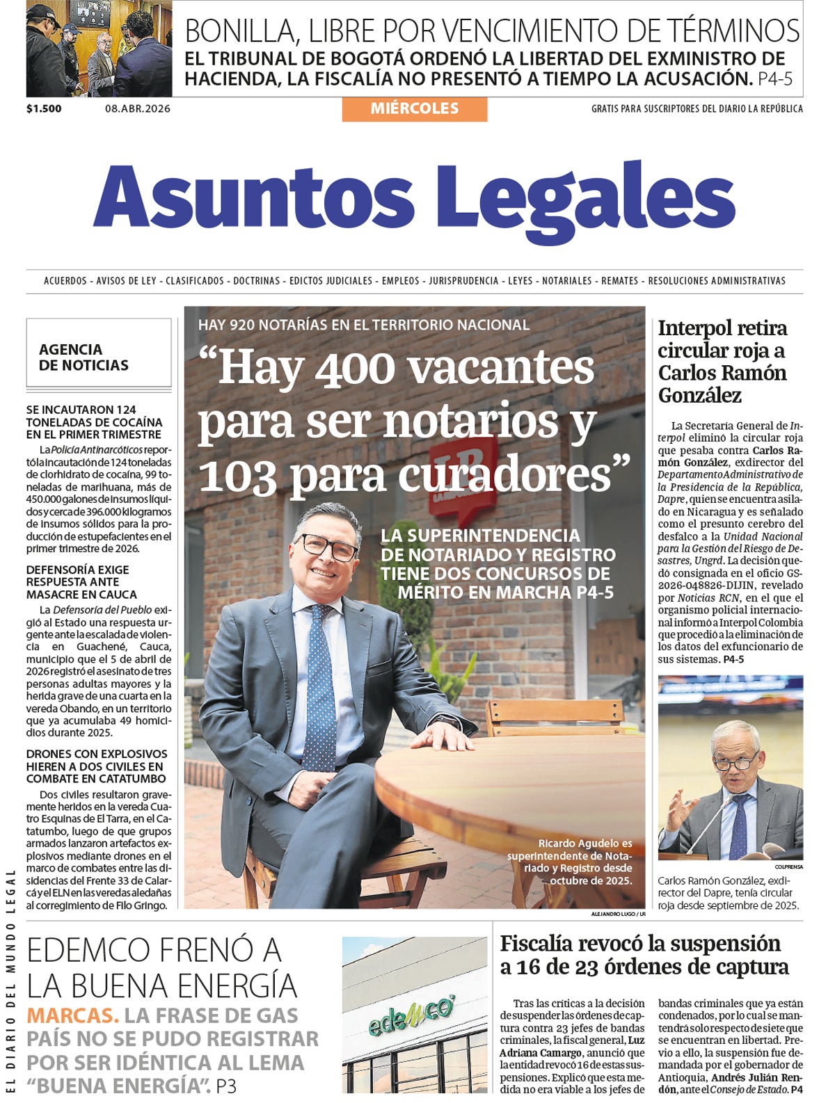 08 de abril de 2026La superintendencia de Notariado y Registro tiene en marcha la convocatoria para el concurso de méritos para ser curador y en junio estará abierta la de las personas que quieren ser notarios. El superintendente, Ricardo Agudelo Sedano, habló acerca de estos procesos y de los retos del ente de control.