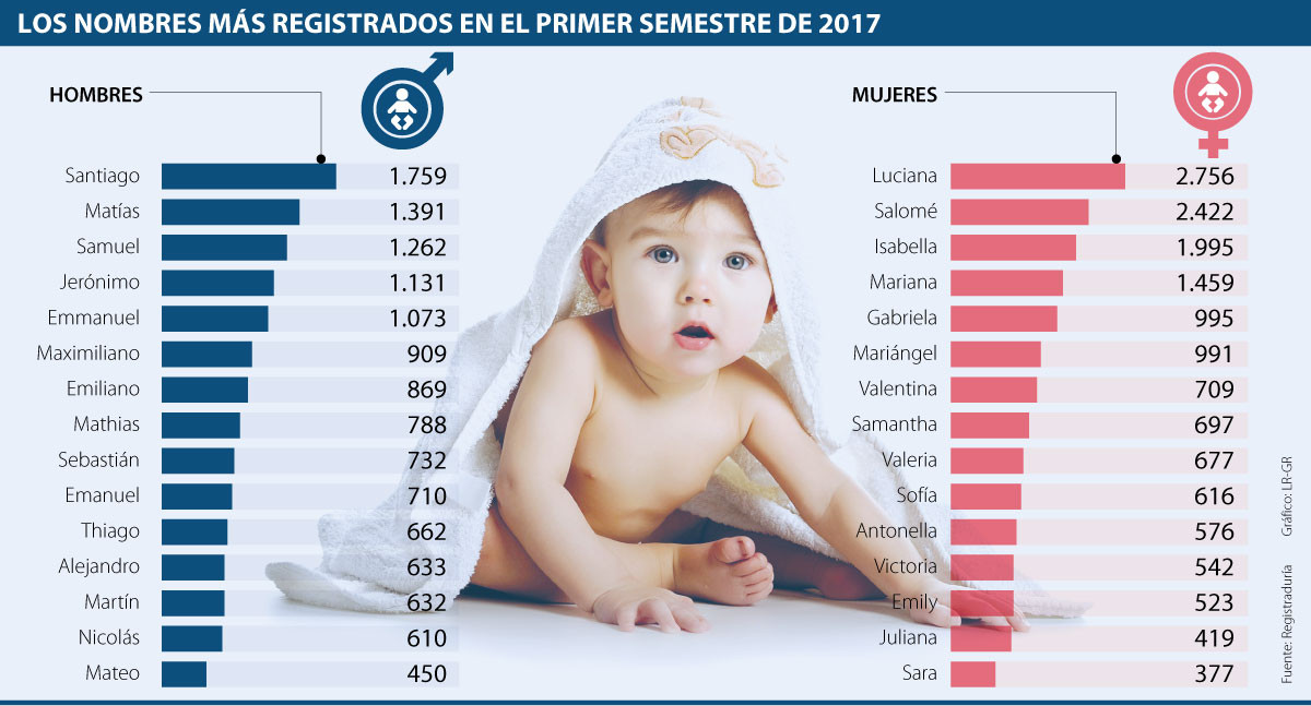 Santiago y Luciana, los nombres más registrados del primer semestre