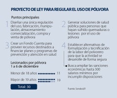 Con esta ley también se busca la profesionalización del oficio pirotécnico, la creación de un fondo de rehabilitación de lesiones a personas provocadas por la pólvora y la implementación de una etiqueta que exponga los riesgos de usar estos elementos.