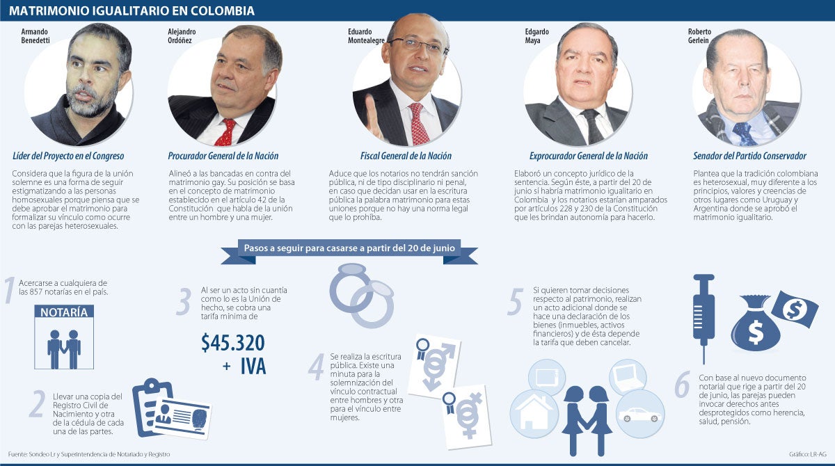 Y según Montealegre, ante una falta de Ley expedida por el Congreso, los notarios podrán decidir si unen o no bajo la figura de matrimonio a la pareja solicitante.