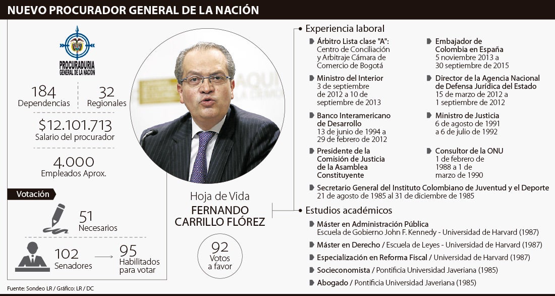 “Como nuevo Procurador General de la Nación, Fernando Carrillo Flórez recibirá todo el apoyo por parte del Gobierno Nacional para que sea garante de la transparencia en Colombia”.