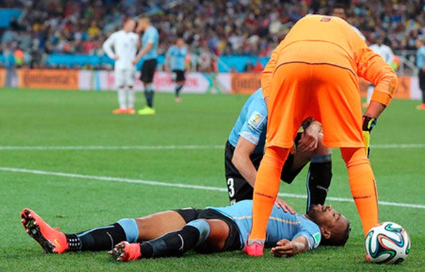 Pereira quedó inmóvil después de que el inglés Raheem Sterling le propinó un rodillazo accidental en la cabeza después de 61 minutos del partido que Uruguay ganó por 2 a 1 el jueves. Al levantarse, Pereira parecía un boxeador confundido tras un nocaut, pero se le permitió que volviera a la cancha tres minutos después.