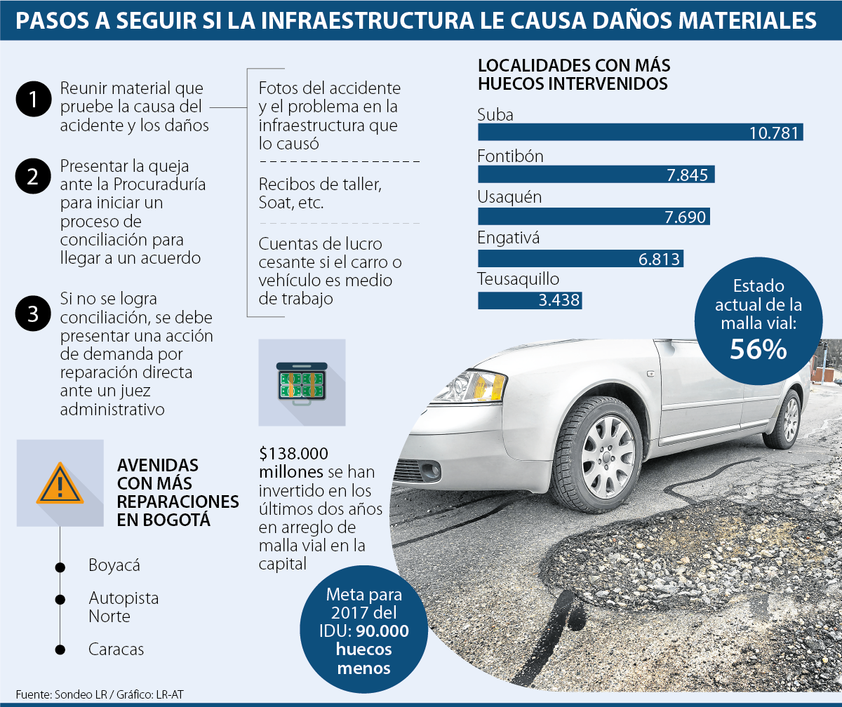 Según Zuleta y Óscar Balaguera, abogado especialista en derecho constitucional y responsabilidad civil de la Universidad Nacional, antes de dirigirse a entablar una demanda de reparación directa ante un juez administrativo, lo ideal sería dirigirse o bien a la Procuraduría delegada para la Contratación Administrativa o incluso al mismo contratista encargado del mantenimiento, con el propósito de conciliar y llegar a un acuerdo económico.
