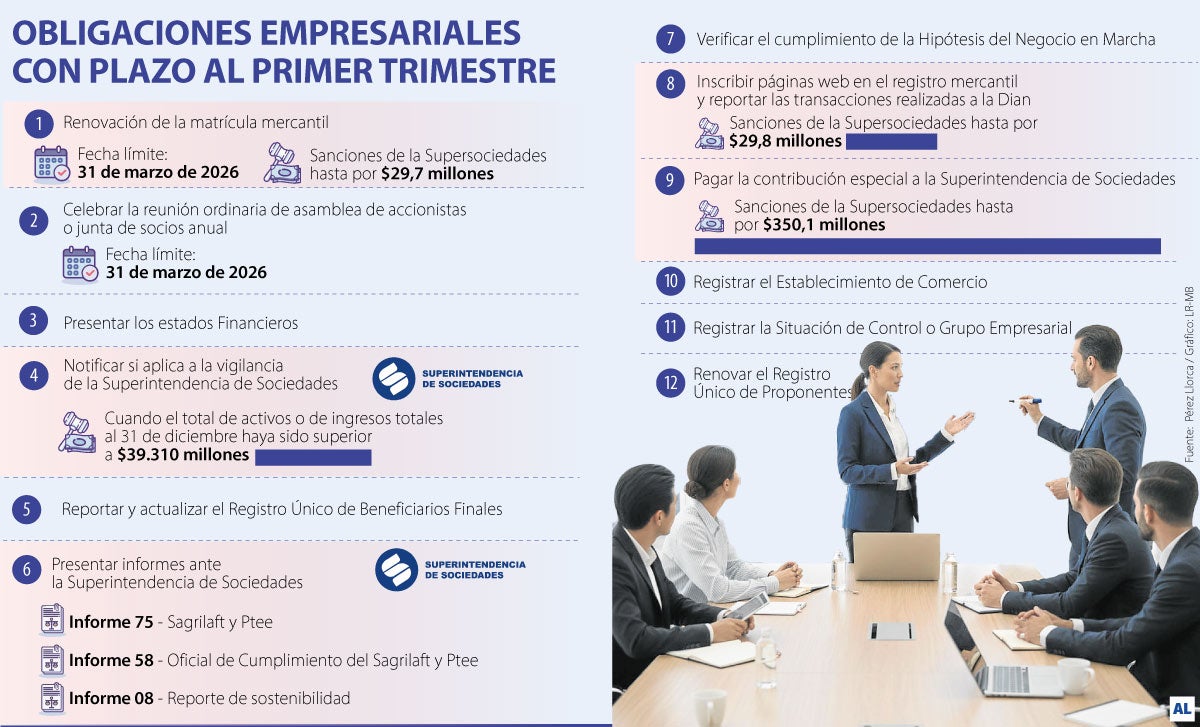 El inicio de 2026 marcó el comienzo de un nuevo calendario corporativo que, con base en la legislación mercantil, define la fecha límite que tienen las sociedades para llevar a cabo diferentes trámites. Si bien la mayoría están enfocados en el análisis de los resultados del año inmediatamente anterior y en la fijación de objetivos de cara a los próximos meses, todos deben cumplirse al pie de la letra para evitar sanciones administrativas y económicas a las que haya lugar.