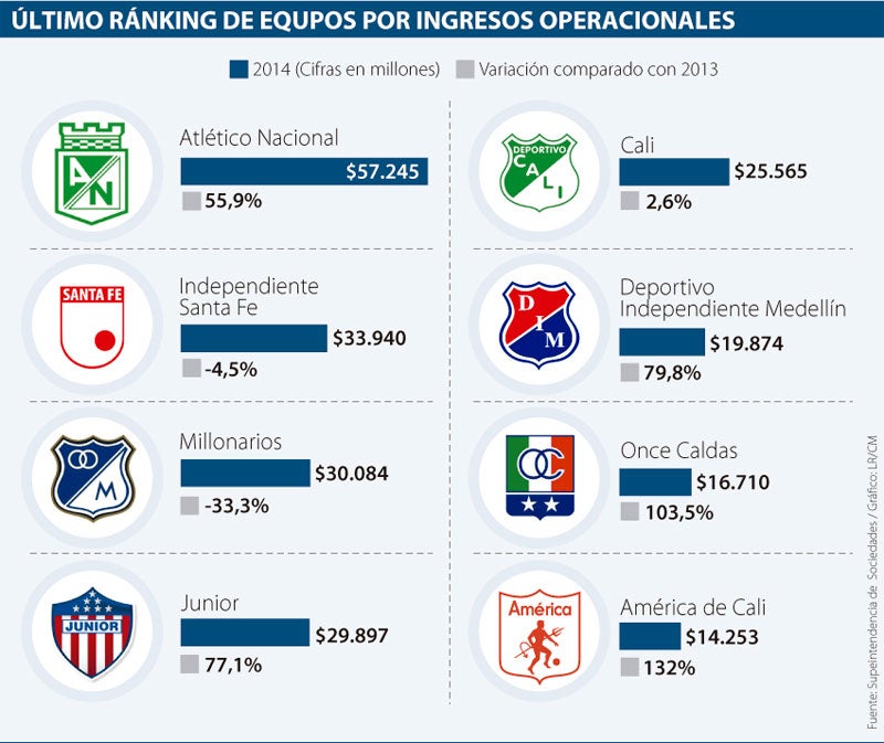 En ese mismo estudio, se señala que los diablos rojos son el único equipo de la B que hace parte de los 10 más rentables del Fútbol Profesional Colombiano, al haber facturado $14.253 millones el año pasado, con utilidades 132,1% superiores a lo hecho en 2013, cuando fueron de $6.140 millones.