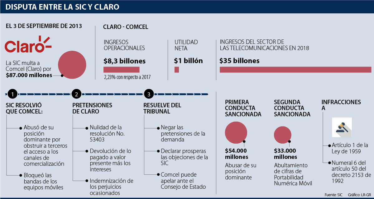 El 3 de septiembre de 2013, la Superintendencia de Industria y Comercio impuso una multa a Comcel (hoy Claro) por $87.000 millones “por infringir la libre competencia económica”.