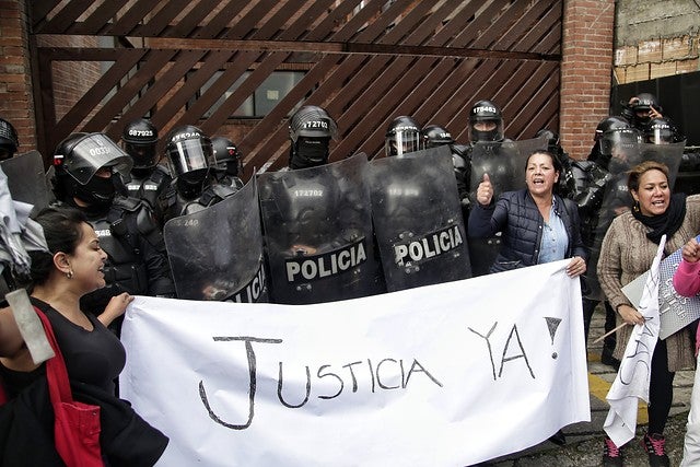 Desde muy temprano con los gritos de “justicia, justicia” y “asesino, asesino”, cientos de personas se aproximaron a la Clínica, ubicada al norte de Bogotá, para protestar por este crimen y por momentos los ánimos se ‘calentaron’.