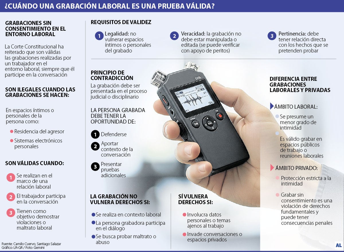“Idealmente, la grabación debe complementarse con otros medios de prueba, como testigos o correos, que refuercen su credibilidad”, dijo Salazar.