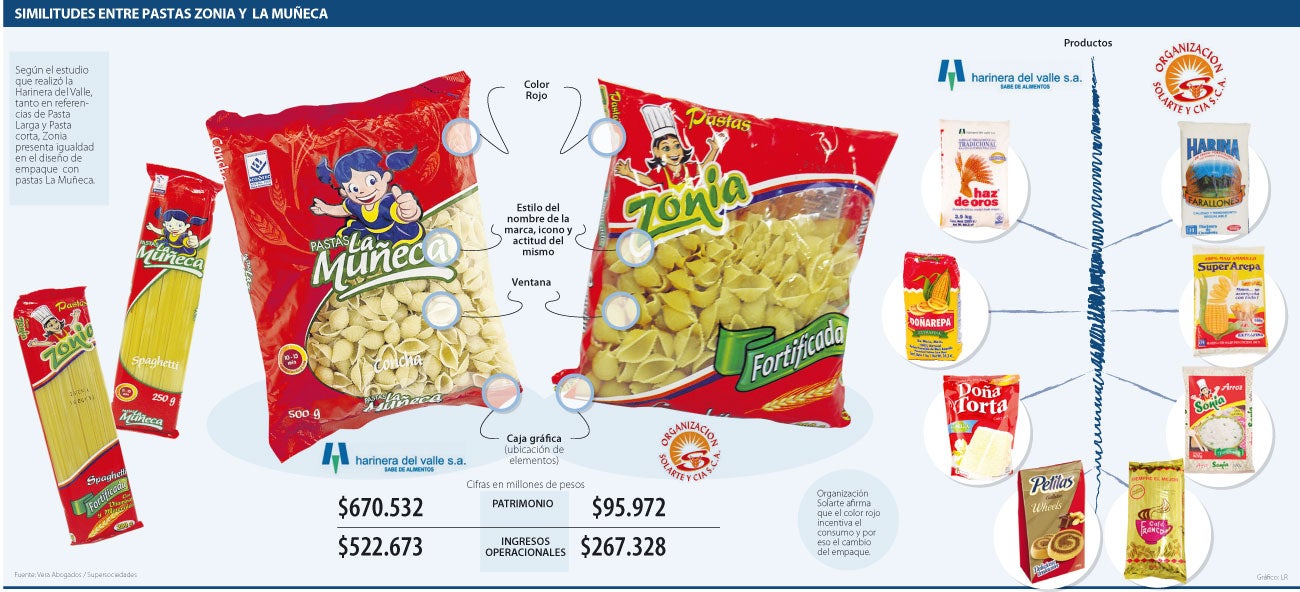 Aunque no hay una decisión final, este es el problema que enfrenta a las compañías Harinera del Valle y la Organización Solarte, específicamente por la similitud del empaque de sus pastas La Muñeca y Zonia, respectivamente.
