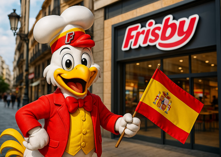 Frisby España utilizó una ilustración asociada a la mascota de Frisby Colombia dentro de su comunicación promocional.