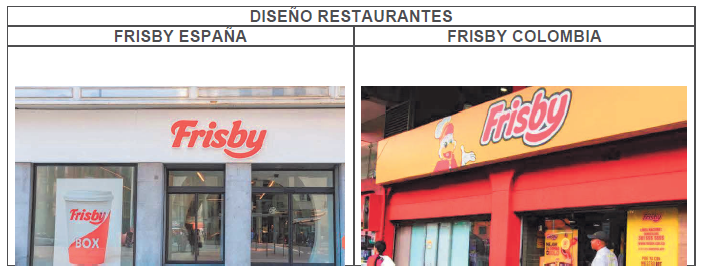 Logosimbolo de Frisby España a la izquierda comparado con su homólogo colombiano. Tomado de: Alegaciones en contestación a la solicitud de nulidad núm. 00007369C, relativa a la marca FRISBY, Alicante, 22 de marzo de 2026.