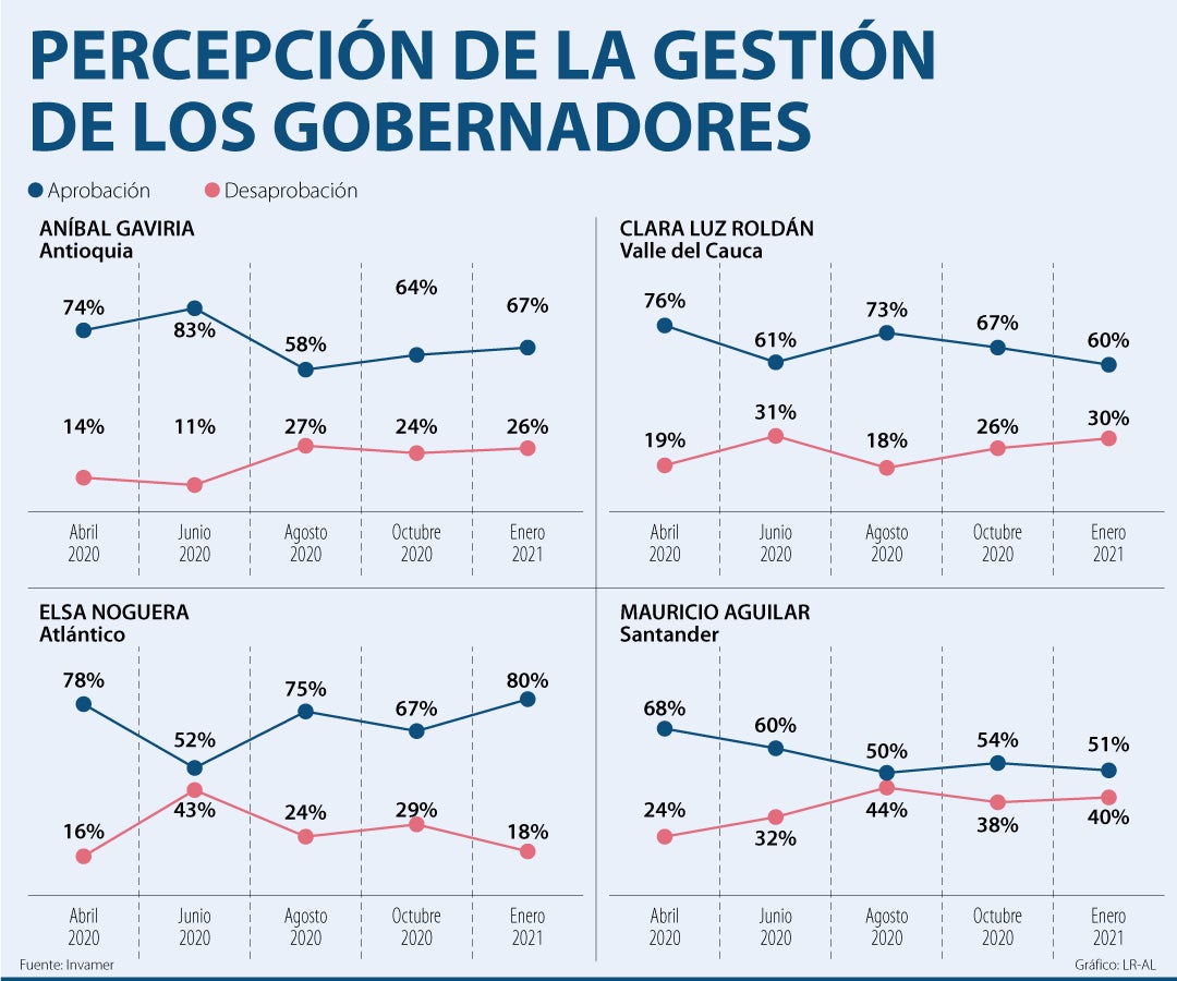 El puntaje de favorabilidad de gestión de las gobernadoras del Atlántico y Valle supera 60%