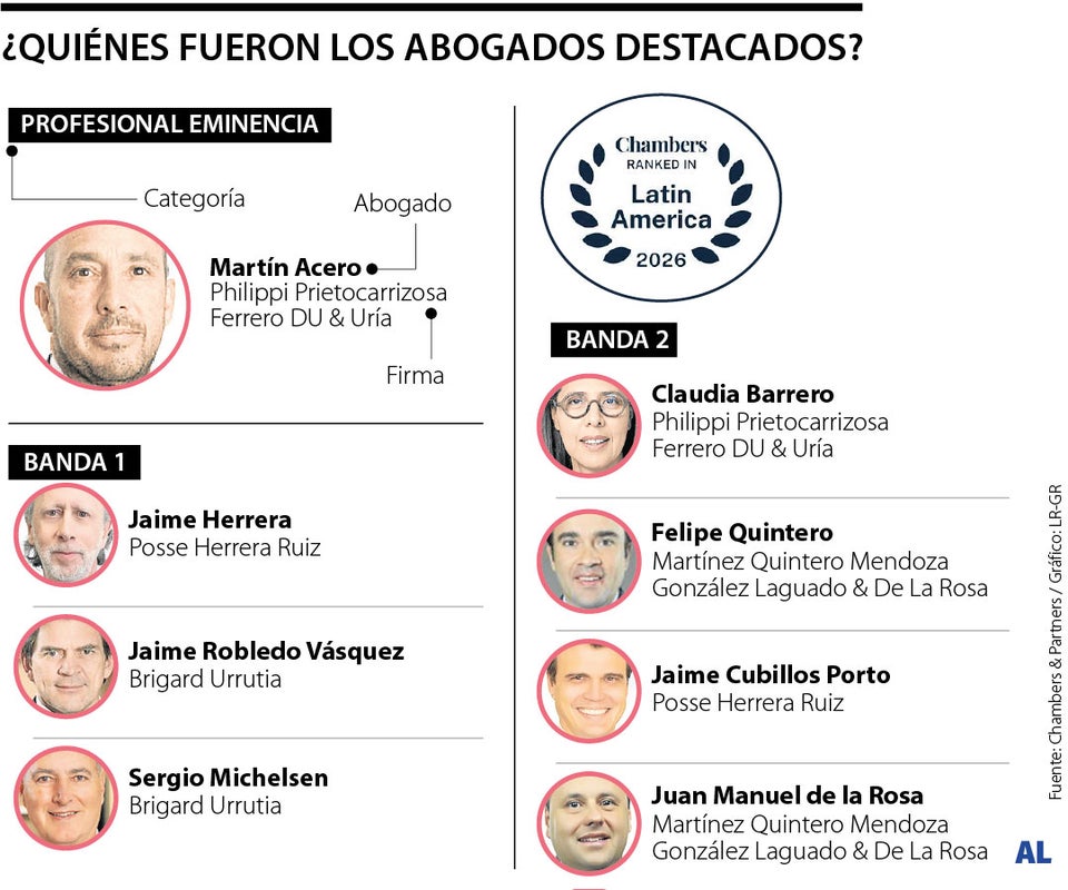Estos son los abogados Banda 1 destacados en listado global de Chambers & Partners