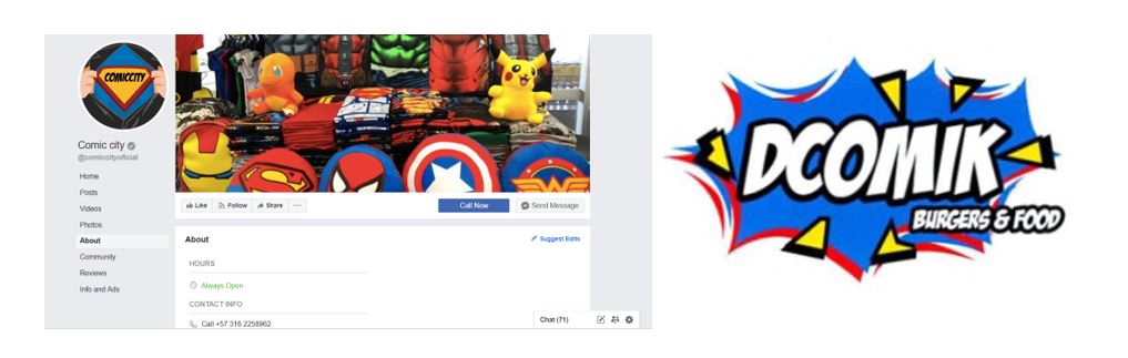 Dada la fama y reconocimiento que han obtenido los cómics en el mundo, existen personas naturales o jurídicas que quieren crear sus negocios usando los símbolos emblemáticos de sus personajes favoritos o sus nombres. De igual manera, reproducen ilustraciones de estos cómics para decorar los restaurantes, páginas web y sus cuentas en redes sociales. Ejemplo: